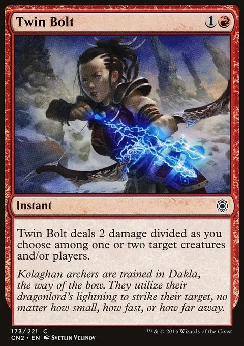 Twin Bolt deals 2 damage divided as you choose among one or two targets.