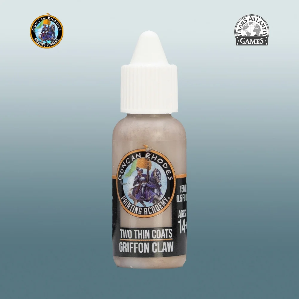 The Duncan Rhodes Painting Academy "Two Thin Coats" Paint Range is a range of paints developed from the ground up with some of the best paint development chemists in the world. These are not paints we just bought off the shelf and bottled. We developed each colour to meet our high standards of what we thought a miniature paint should be. We have been working in partnership with Trans Atlantis Games to create a set of paints that would be useful to any level of hobbyist. Whether you are a beginner or a seasoned painter, we believe that you'll find using these paints an absolute joy to use! We are both extremely excited for hobbyists around the world to get their hands on these paints and to give them a whirl . . . or to apply two thin coats!