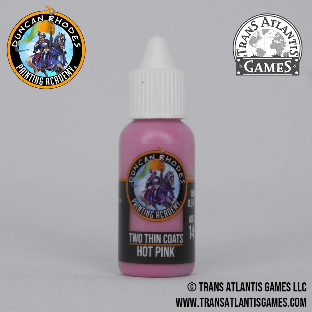 The Duncan Rhodes Painting Academy "Two Thin Coats" Paint Range is a range of paints developed from the ground up with some of the best paint development chemists in the world. These are not paints we just bought off the shelf and bottled. We developed each colour to meet our high standards of what we thought a miniature paint should be. We have been working in partnership with Trans Atlantis Games to create a set of paints that would be useful to any level of hobbyist. Whether you are a beginner or a seasoned painter, we believe that you'll find using these paints an absolute joy to use! We are both extremely excited for hobbyists around the world to get their hands on these paints and to give them a whirl . . . or to apply two thin coats!