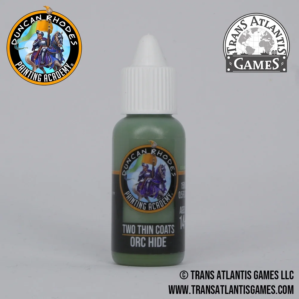 The Duncan Rhodes Painting Academy "Two Thin Coats" Paint Range is a range of paints developed from the ground up with some of the best paint development chemists in the world. These are not paints we just bought off the shelf and bottled. We developed each colour to meet our high standards of what we thought a miniature paint should be. We have been working in partnership with Trans Atlantis Games to create a set of paints that would be useful to any level of hobbyist. Whether you are a beginner or a seasoned painter, we believe that you'll find using these paints an absolute joy to use! We are both extremely excited for hobbyists around the world to get their hands on these paints and to give them a whirl . . . or to apply two thin coats!