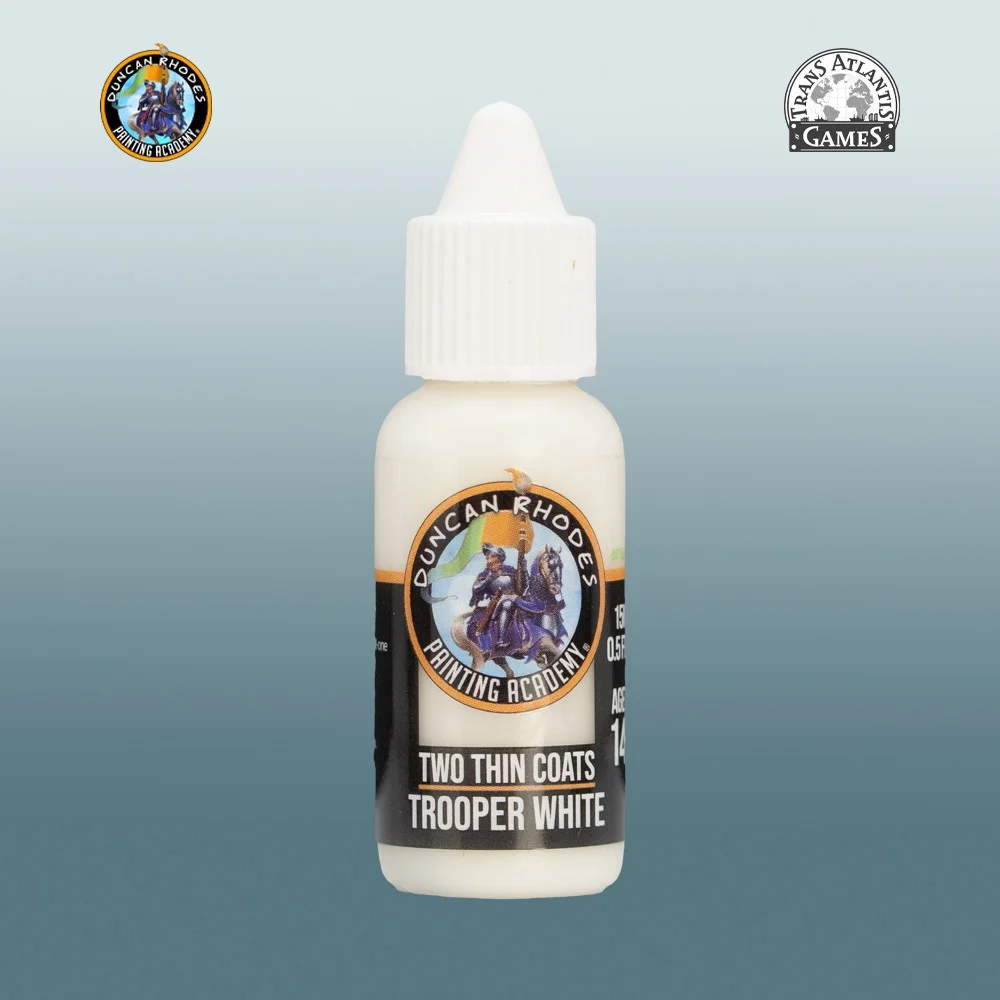 The Duncan Rhodes Painting Academy "Two Thin Coats" Paint Range is a range of paints developed from the ground up with some of the best paint development chemists in the world. These are not paints we just bought off the shelf and bottled. We developed each colour to meet our high standards of what we thought a miniature paint should be. We have been working in partnership with Trans Atlantis Games to create a set of paints that would be useful to any level of hobbyist. Whether you are a beginner or a seasoned painter, we believe that you'll find using these paints an absolute joy to use! We are both extremely excited for hobbyists around the world to get their hands on these paints and to give them a whirl . . . or to apply two thin coats!