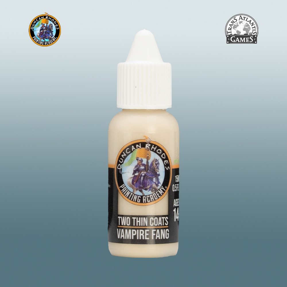 The Duncan Rhodes Painting Academy "Two Thin Coats" Paint Range is a range of paints developed from the ground up with some of the best paint development chemists in the world. These are not paints we just bought off the shelf and bottled. We developed each colour to meet our high standards of what we thought a miniature paint should be. We have been working in partnership with Trans Atlantis Games to create a set of paints that would be useful to any level of hobbyist. Whether you are a beginner or a seasoned painter, we believe that you'll find using these paints an absolute joy to use! We are both extremely excited for hobbyists around the world to get their hands on these paints and to give them a whirl . . . or to apply two thin coats!