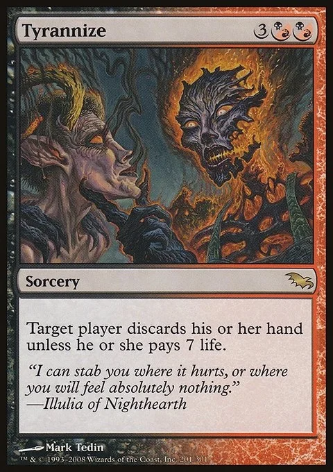 Target player discards his or her hand unless he or she pays 7 life.