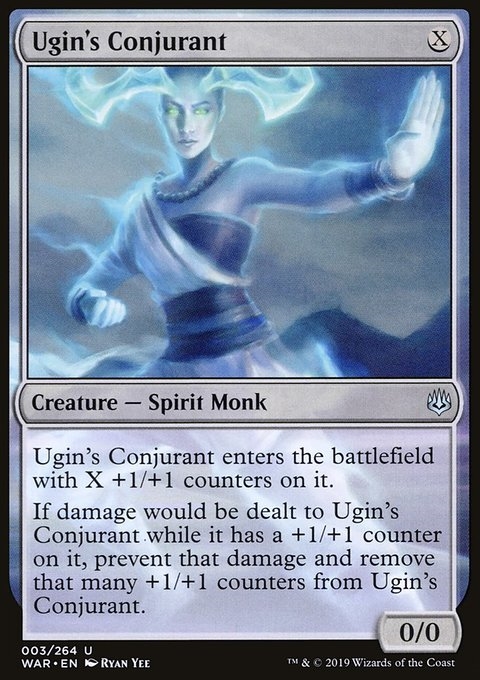 Ugin's Conjurant enters the battlefield with X +1/+1 counters on it. If damage would be dealt to Ugin's Conjurant while it has a +1/+1 counter on it, prevent that damage and remove that many +1/+1 counters from Ugin's Conjurant.