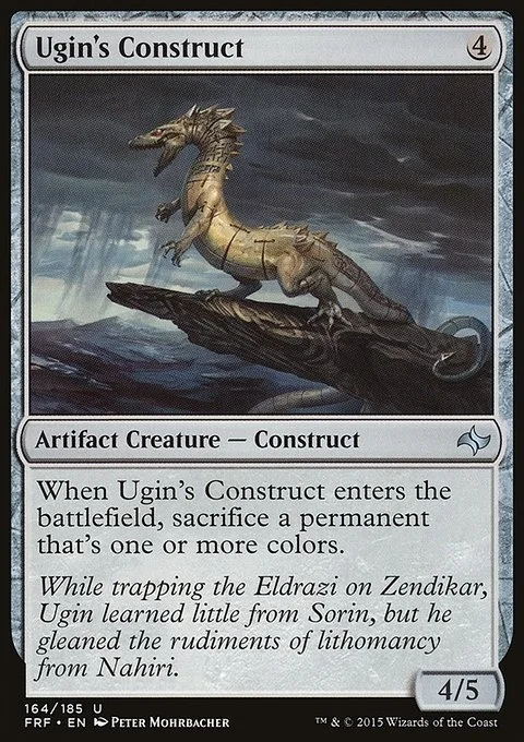 When Ugin's Construct enters the battlefield, sacrifice a permanent that's one or more colors.