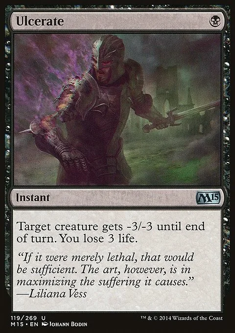 Target creature gets -3/-3 until end of turn. You lose 3 life.