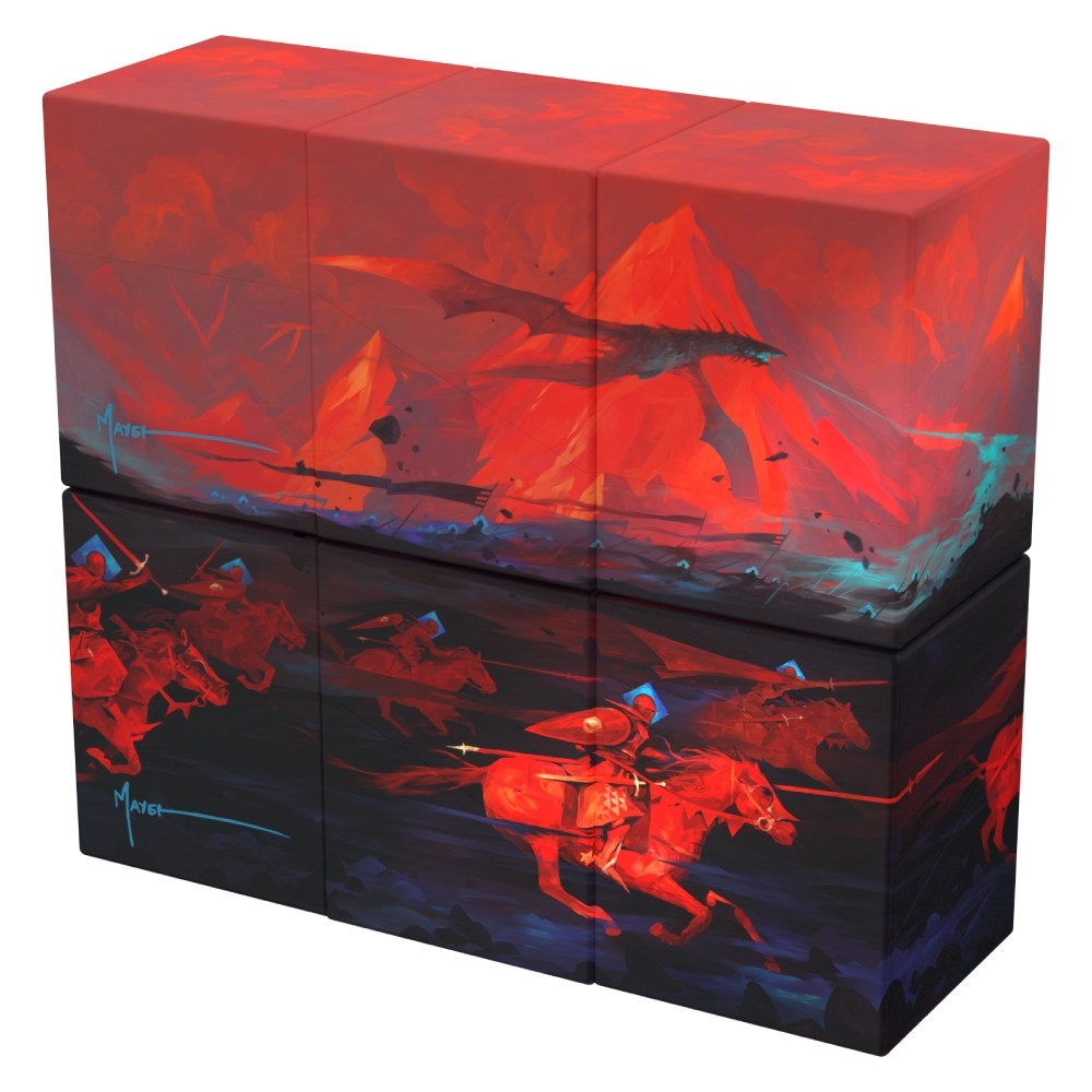 Finished with a durable and vibrant full-colour print, each deck box offers space for 100 double-sleeved cards. The RTE Boulder 100+ is made from 78% renewable resources in Germany. If you combine several deck boxes together, you can reveal the complete artwork: a sinister look into a world of knights and dragons!