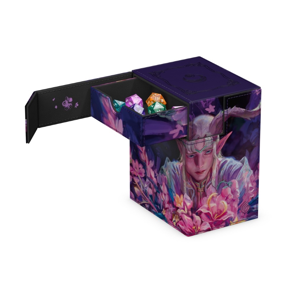 The Flip'n'Tray 133+ Xenoskin is a high-quality TCG deck box that offers premium card protection thanks to its resistant Xenoskin material, microfiber inner lining, and strong magnetic closure. The deck box has an integrated and removable accessory tray for dice that can be accessed independently, and is printed in full color with officially licensed artworks from Magic: The Gathering’s upcoming set "Lorwyn Eclipsed". The Flip’n’Tray 133+ Xenoskin is optimized to hold 133 double-sleeved or 160 single-sleeved cards in Ultimate Guard sleeves.