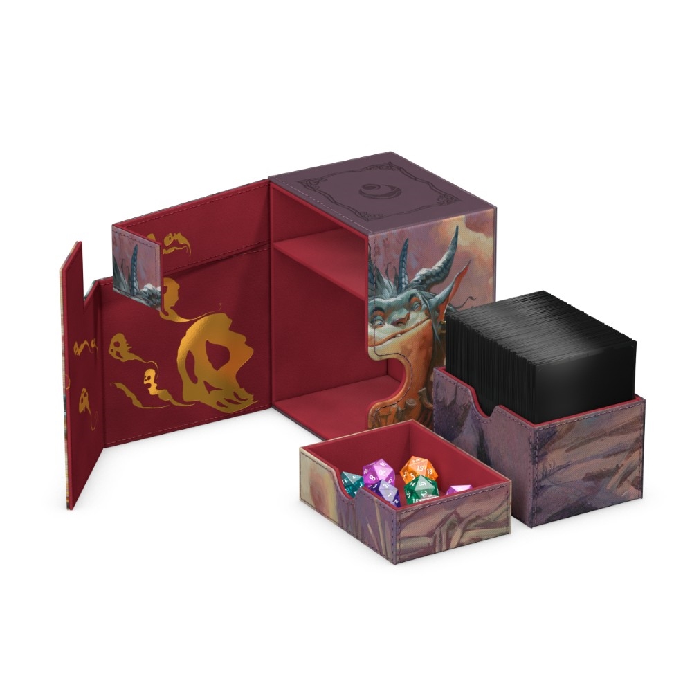The Flip'n'Tray 133+ Xenoskin is a high-quality TCG deck box that offers premium card protection thanks to its resistant Xenoskin material, microfiber inner lining, and strong magnetic closure. The deck box has an integrated and removable accessory tray for dice that can be accessed independently, and is printed in full color with officially licensed artworks from Magic: The Gathering’s upcoming set "Lorwyn Eclipsed". The Flip’n’Tray 133+ Xenoskin is optimized to hold 133 double-sleeved or 160 single-sleeved cards in Ultimate Guard sleeves.