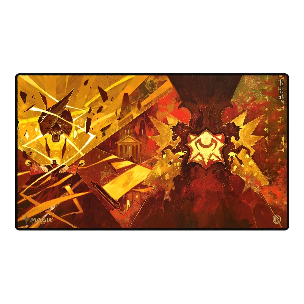 The 61x35cm Play-Mat protects cards and sleeves while playing and improves the gaming experience thanks to its anti-slip underside, while the stitched edges guarantee an even longer service life. The top side of the Play-Mat is printed with officially licensed artworks from Magic: The Gathering’s upcoming set "Secrets of Strixhaven".