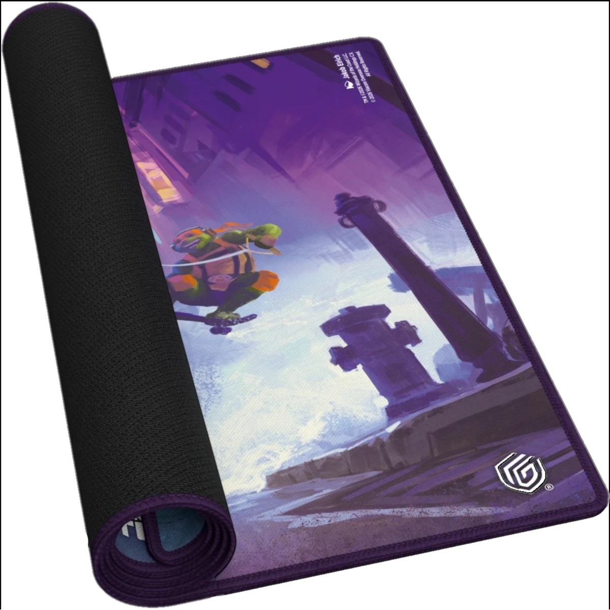 Ultimate Guard's Play-Mat Standard, featuring officially licensed artwork from the "Magic: The Gathering | Teenage Mutant Ninja Turtles" set, is a high-quality, 61 x 35 cm MTG playmat that enhances the gaming experience and protects MTG cards, sleeves, and accessories from scratches, wear, and dirt. The 2 mm thick, soft-cushioned playmat is made from natural rubber and features Ultimate Guard's trusted anti-slip underside and a high-quality, soft fabric surface. The gaming mat's stitched edges prevent fraying and ensure long-lasting durability.