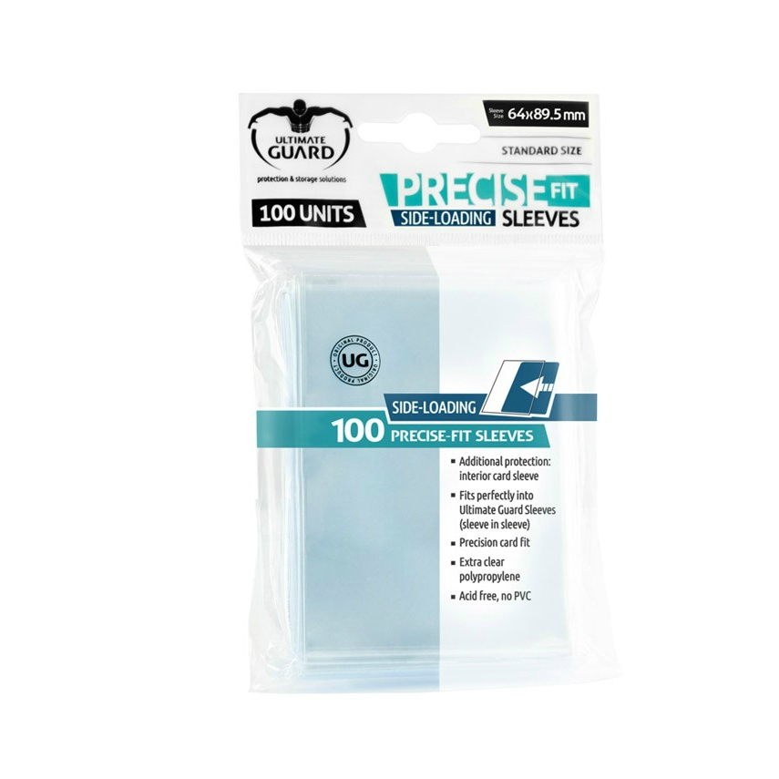 These sleeves with side-loading design for hassle-free double-sleeving fit perfectly into ULTIMATE GUARD Sleeves (sleeve in sleeve). Perfect for Magic the Gathering ™, Pokemon ™ and many other standard-sized cards. 100 sleeves per pack.
