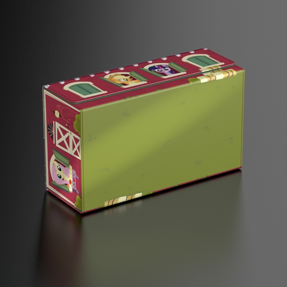 The perfect storage box for multiple TCG decks, trading cards, and of course your Squaroes collection: The "Barn" Collectors Case from the My Little Pony "Friendship is Magic" edition is the ideal home for up to eight Squaroes boxes, individual trading cards (up to 1000 in double protective sleeves), or gaming accessories of all kinds. The full-color printed, durable Xenoskin material and the strong magnetic closure with ZnapClaw mechanism ensure that all contents are kept safe.