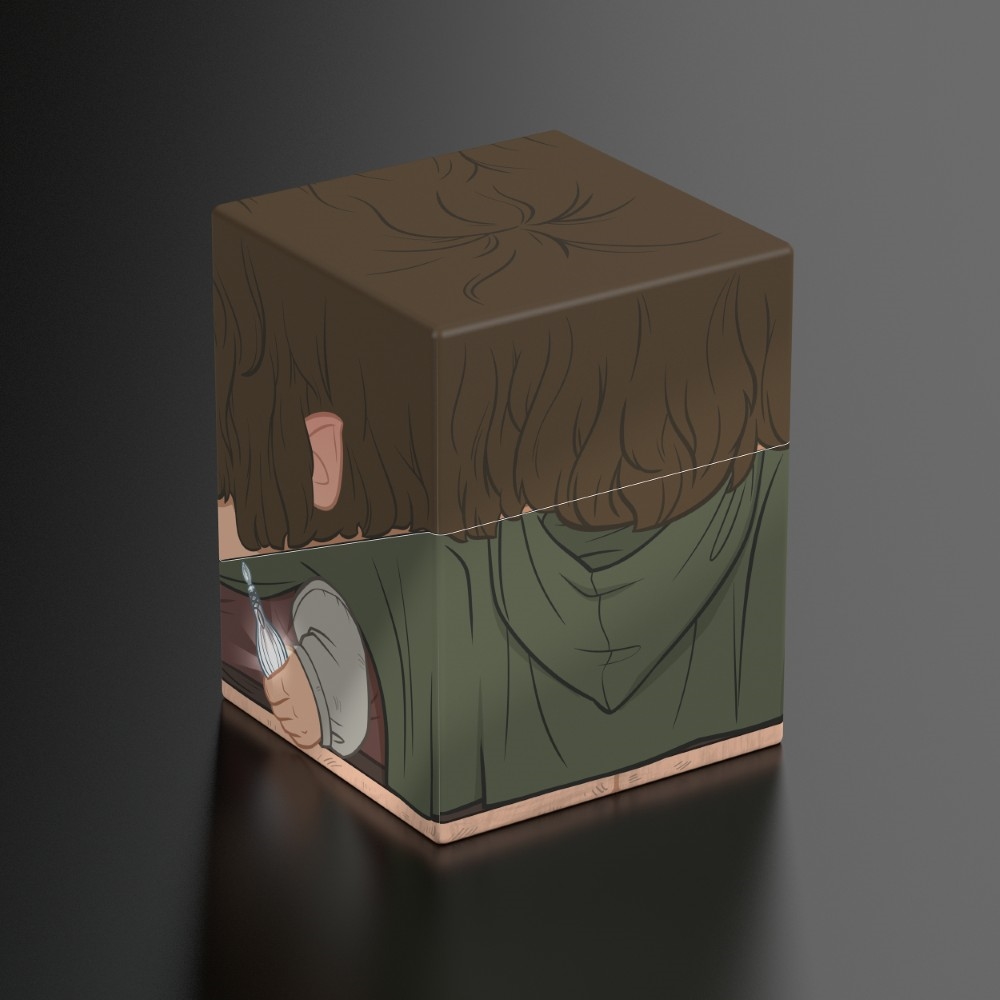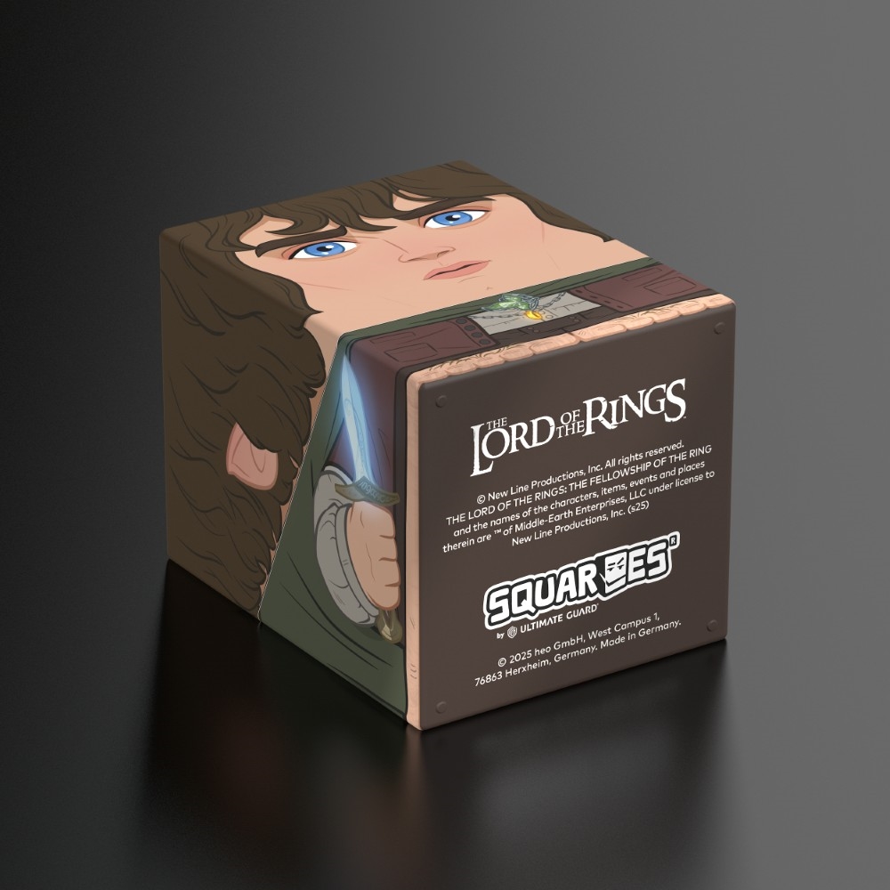Collectible box for storing TCG decks, tabletop gaming accessories, and/or collectibles. The Frodo Squaroe from the The Lord of the Rings edition holds up to 100 cards in double protective sleeves if used as a deck box. Squaroes are made from 78% renewable resources and fit perfectly into the separately available Collectors Case.