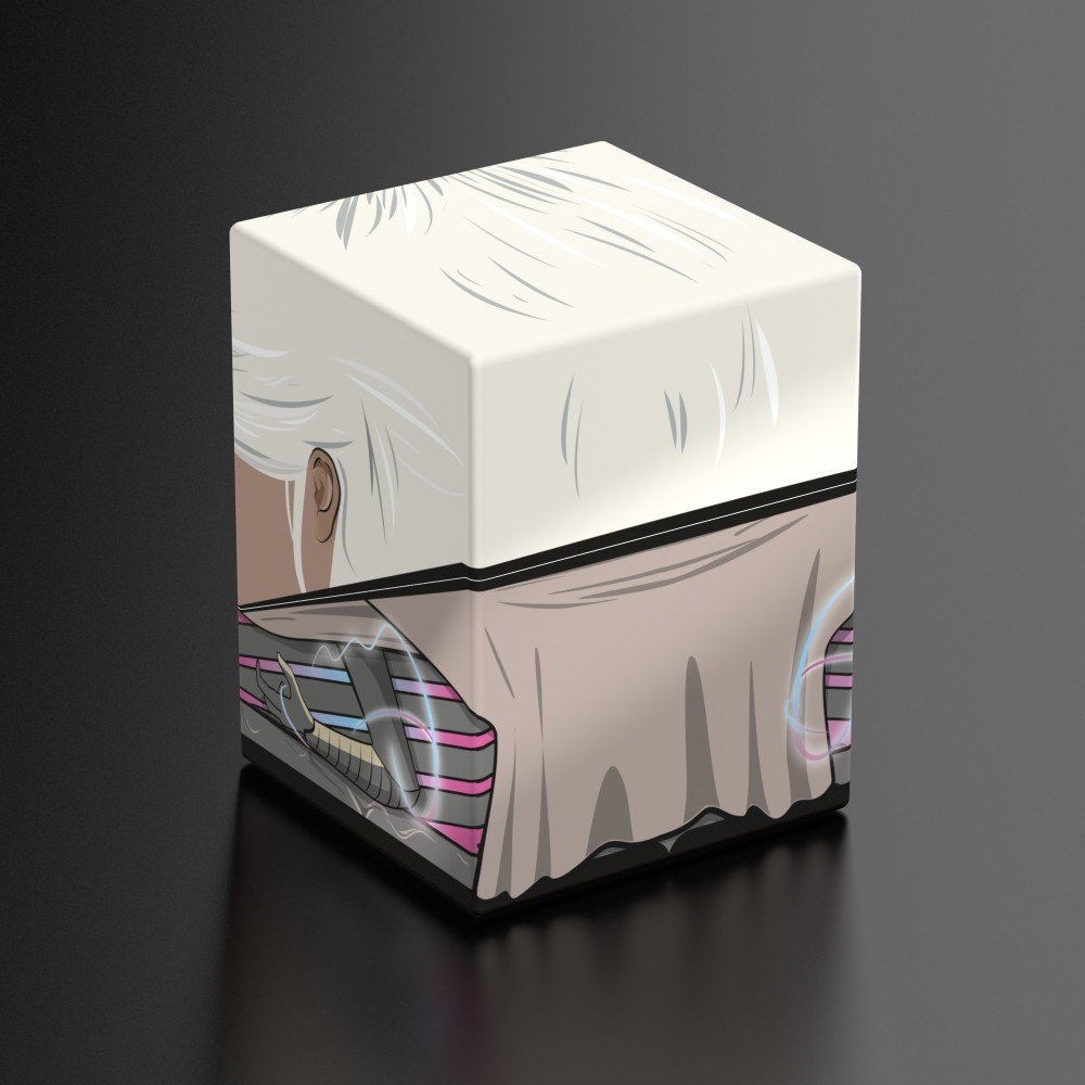 Collectible box for storing your deck, tabletop gaming accessories, and/or collectibles. The Squaroe from the Magic: The Gathering edition holds up to 100 cards in double protective sleeves if used as a deck box. Squaroes are made from 78% renewable resources.