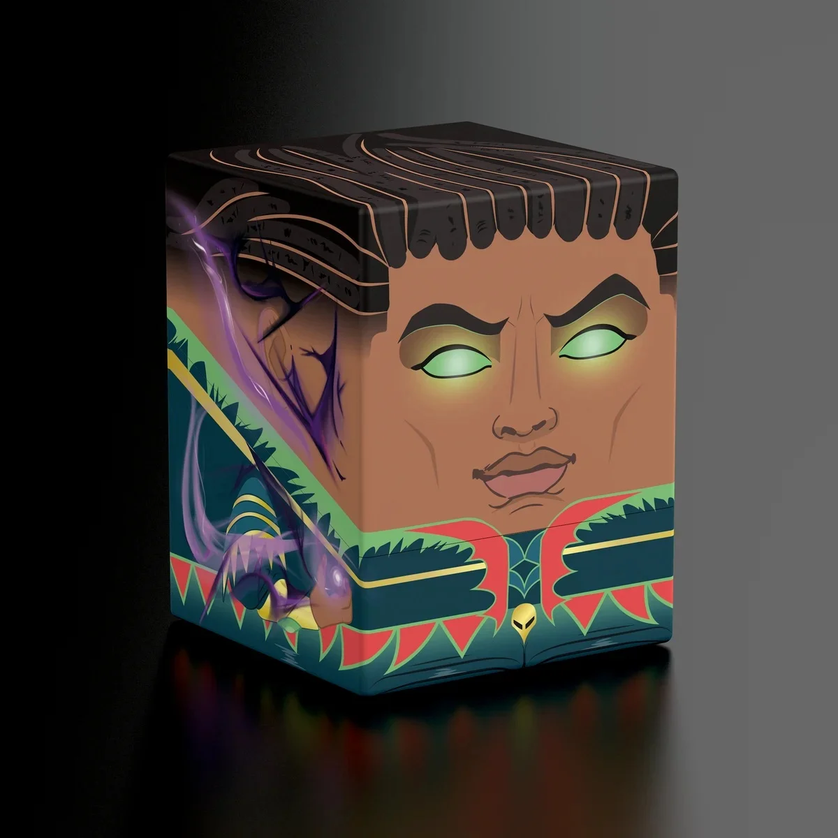 Collectible box for storing your deck, tabletop gaming accessories, and/or collectibles. The Squaroe from the Magic: The Gathering edition holds up to 100 cards in double protective sleeves if used as a deck box. Squaroes are made from 78% renewable resources.