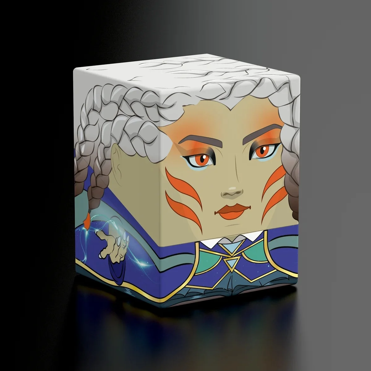 Collectible box for storing your deck, tabletop gaming accessories, and/or collectibles. The Squaroe from the Magic: The Gathering edition holds up to 100 cards in double protective sleeves if used as a deck box. Squaroes are made from 78% renewable resources.