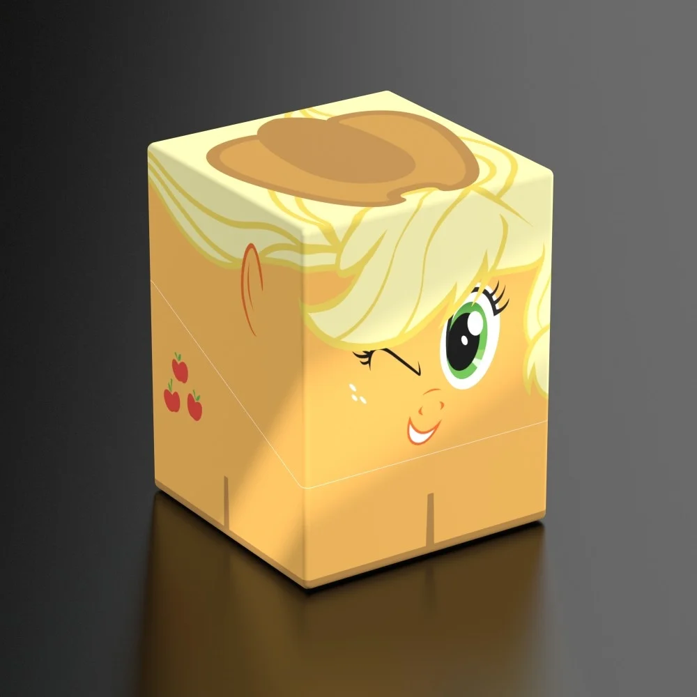 Collectible box for storing TCG decks, tabletop gaming accessories, and/or collectibles. The Apple Jack Squaroe from the My Little Pony "Friendship is Magic" edition holds up to 100 cards in double protective sleeves if used as a deck box. Squares are made from 78% renewable resources and fit perfectly into the separately available Collectors Case (available here).
