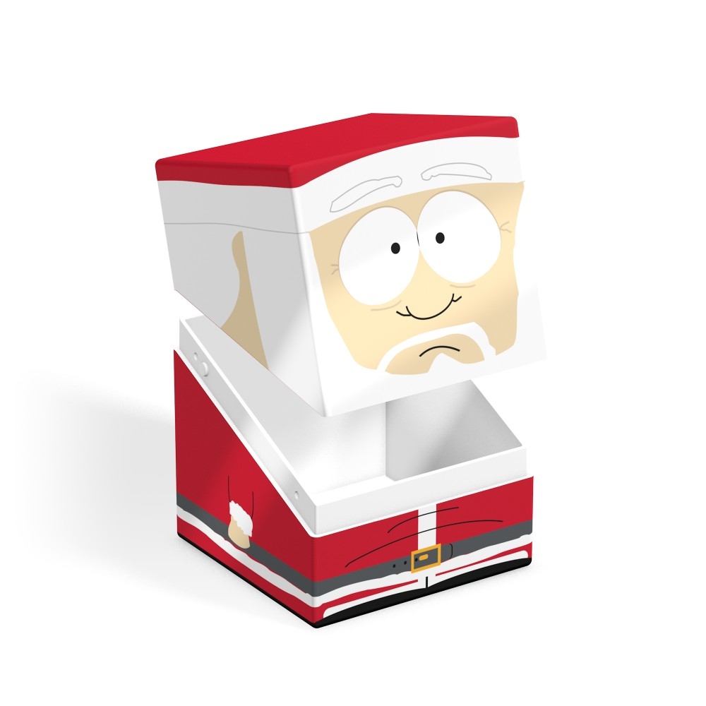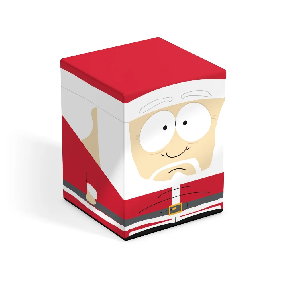 Collectible box for storing TCG decks, tabletop gaming accessories, and/or collectibles. The Santa Squaroe from the South Park edition holds up to 100 cards in double protective sleeves if used as a deck box. Squaroes are made from 78% renewable resources and fit perfectly into the separately available Collectors Case.