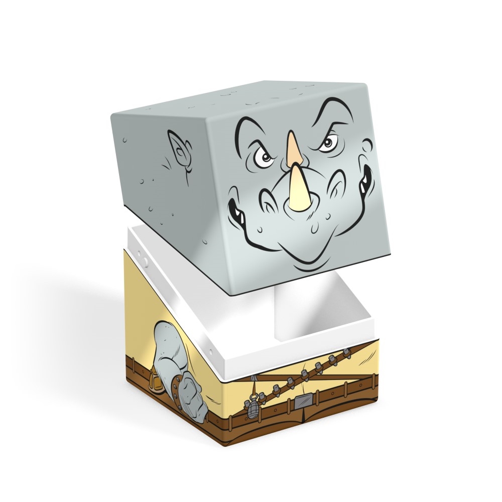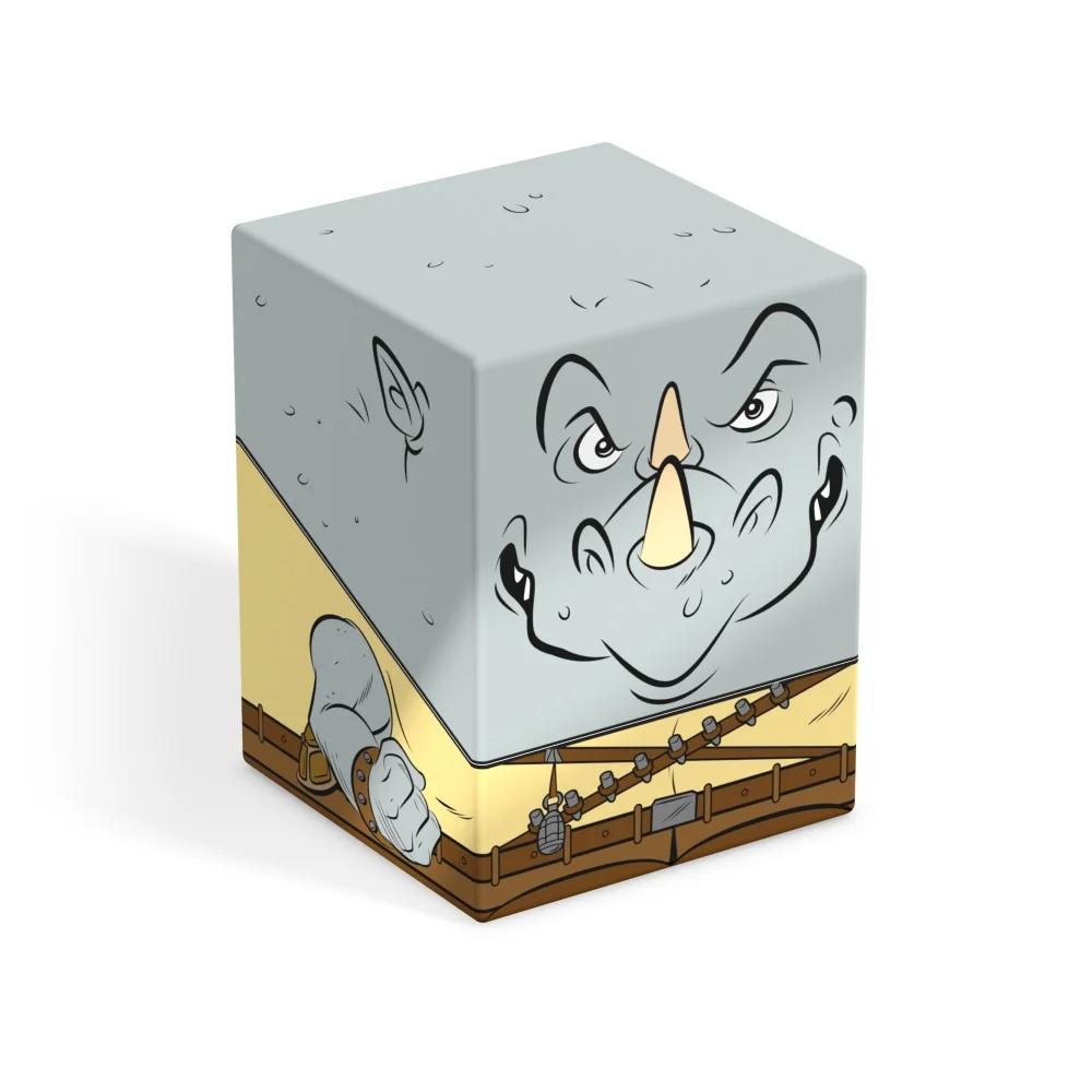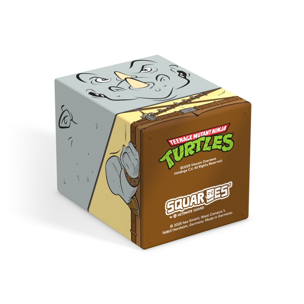 Collectible box for storing TCG decks, tabletop gaming accessories, and/or collectibles. The Rocksteady Squaroe from the Teenage Mutant Ninja Turtles edition holds up to 100 cards in double protective sleeves if used as a deck box. Squaroes are made from 78% renewable resources and fit perfectly into the separately available Collectors Case.