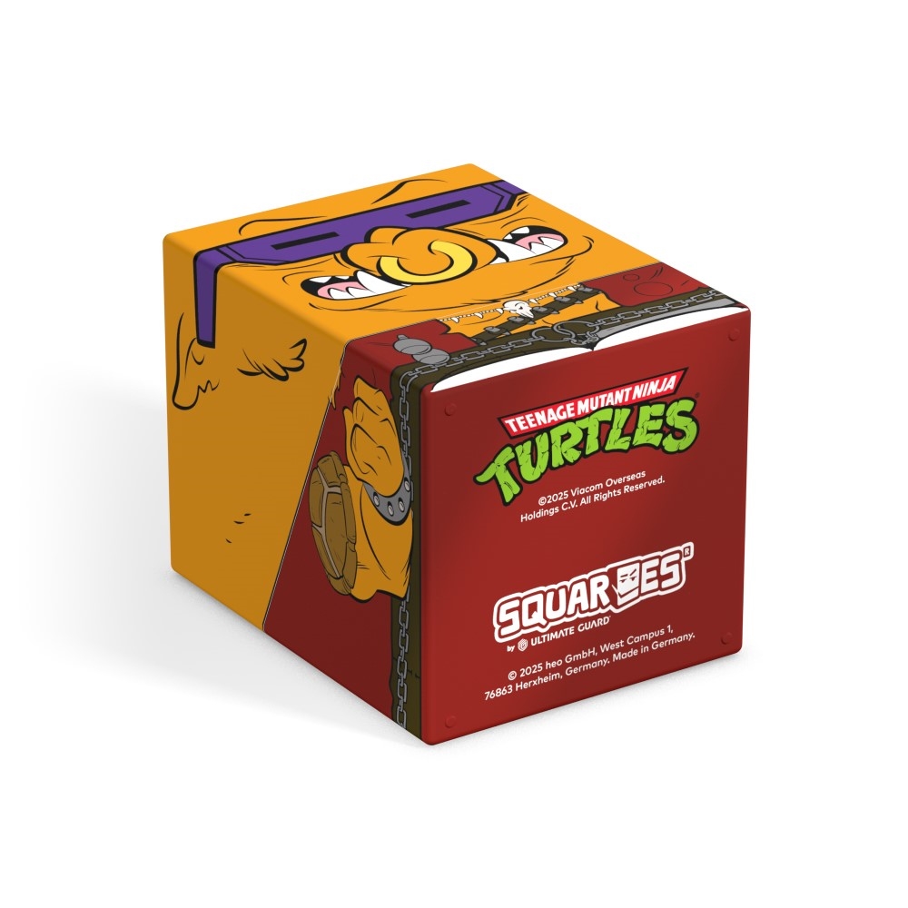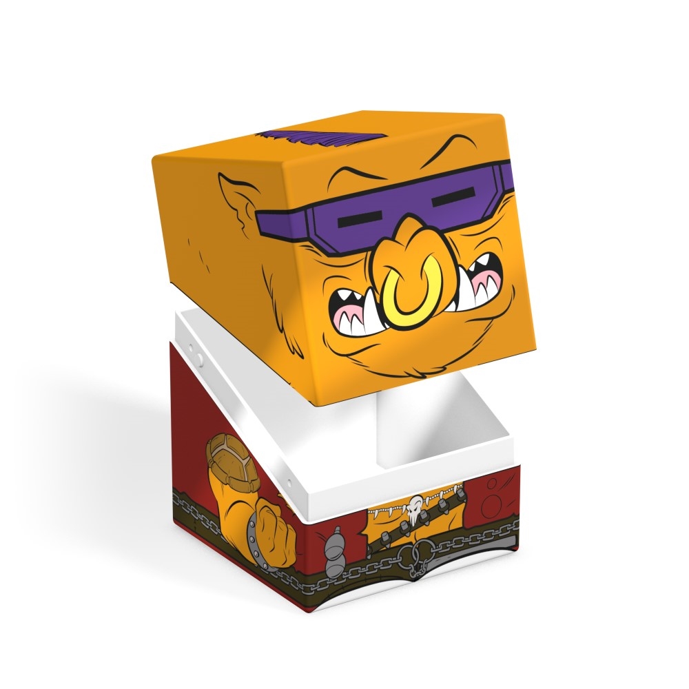 Collectible box for storing TCG decks, tabletop gaming accessories, and/or collectibles. The Bebop Squaroe from the Teenage Mutant Ninja Turtles edition holds up to 100 cards in double protective sleeves if used as a deck box. Squaroes are made from 78% renewable resources and fit perfectly into the separately available Collectors Case.