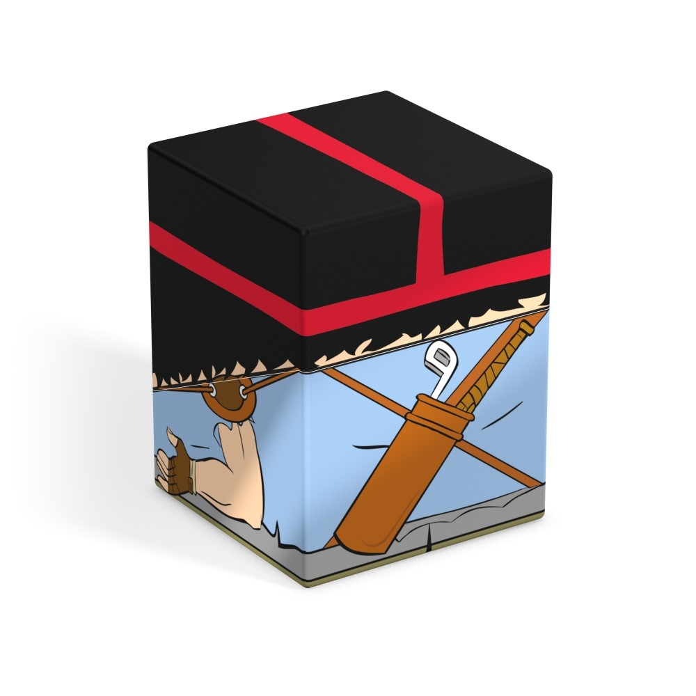 Collectible box for storing TCG decks, tabletop gaming accessories, and/or collectibles. The Casey Jones Squaroe from the Teenage Mutant Ninja Turtles edition holds up to 100 cards in double protective sleeves if used as a deck box. Squaroes are made from 78% renewable resources and fit perfectly into the separately available Collectors Case.