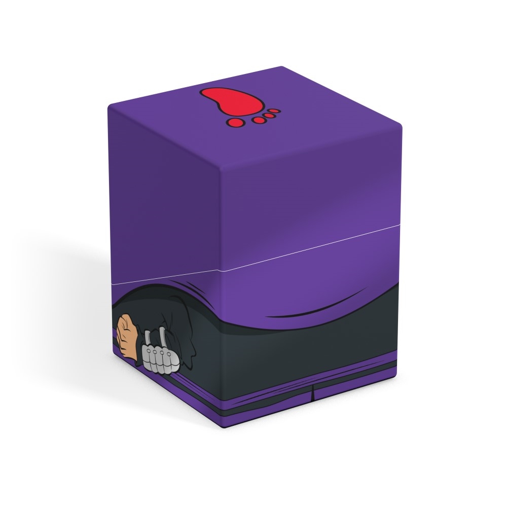 Collectible box for storing TCG decks, tabletop gaming accessories, and/or collectibles. The Footclan Squaroe from the Teenage Mutant Ninja Turtles edition holds up to 100 cards in double protective sleeves if used as a deck box. Squaroes are made from 78% renewable resources and fit perfectly into the separately available Collectors Case.