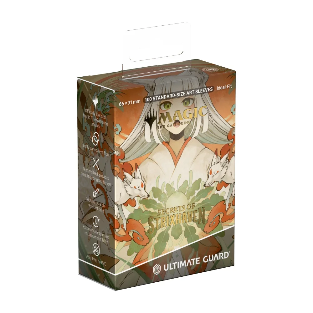 Ultimate Guard’s Art Sleeves are premium card sleeves with officially licensed artwork from Magic: The Gathering’s "Secrets of Strixhaven" set, featuring a detailed, scratch-proof print on the fully opaque back and an extra-clear front. Their textured back ensures a smooth shuffle feel, while high-quality materials guarantee durability, making Art Sleeves ideal for both casual and tournament players.