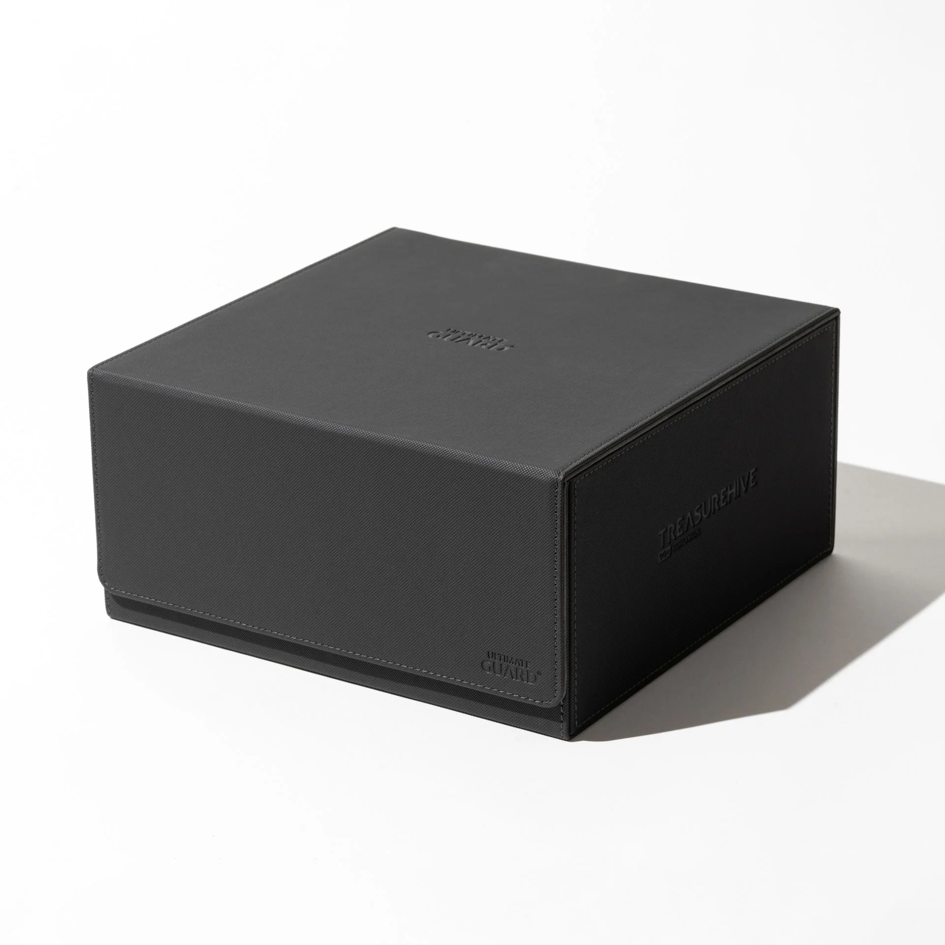 Keep your treasures safer than a pirate’s!?The Treasurehive 90+ is specially designed for storing up to 90 Ultimate Guard Magnetic Card Cases (35pt). This elegant box can also hold over 370+ Toploaders or a variety of Ultimate Guard card cases in different sizes to keep your most precious and valuable cards protected from any harm. With some extra space on the sides, it also offers room for 990 double-sleeved cards.