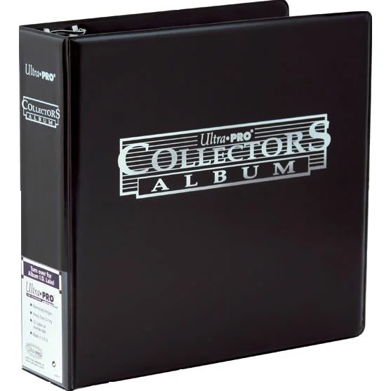 The 3 inch Black Collectors Album for standard size pages features the collectors themed hot stamp foil on a black cover. Each album is equipped with three reinforced 3″ D-rings and boosters for easy opening and loading. Collectors Albums include rich foam padding and are constructed with a clear indexing slot on the spine for easy organization. Stores up to 450 cards single-loaded in 50 Ultra PRO Platinum Pages safely and is rated to withstand temperatures as low as 10° F to minimize cold cracking.