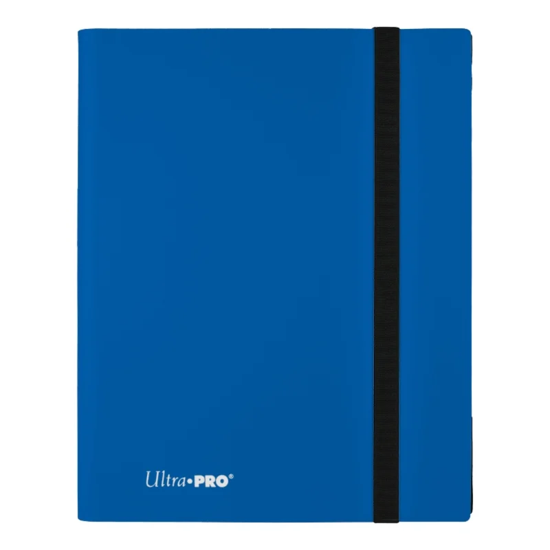Side loading pocket design to prevent cards from easily falling out. Elastic strap holds the binder shut when not in use. All materials made from archival-safe, acid-free non-PVC material. Holds 360 cards in Ultra Pro Deck Protector sleeves.
