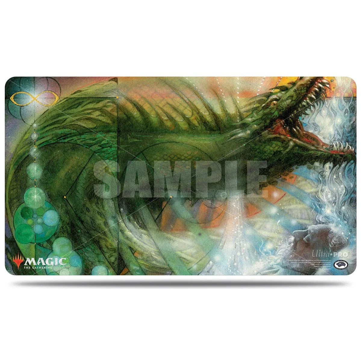 Up your game at your next game night with these official Magic: The Gathering playmats showcasing highly detailed and vibrant artwork from popular trading card game. Made with a premium fabric top to prevent damage to cards during game play for tabletop gamers. With dimensions of approximately 24" X 13-1/2", this playmat is also the perfect decorative over sized mouse pad for computer and laptop workstations. Non-slip rubber backing lets the playmat lay flat and prevents it from shifting during use.