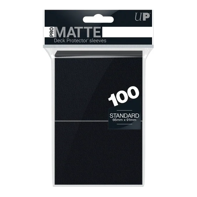 Made with acid-free, non-PVC polypropylene materials, our PRO-Matte Deck Protector® sleeves will keep your cards safe from scratches and wear. The matte finish helps minimize glare during play, while the textured matte back keeps cards from sticking together and provides a smooth shuffle. Each pack includes standard size sleeves, which fit both Pokémon and Magic: The Gathering trading cards. You’ll know it’s Ultra PRO quality when you see the heat transferred holographic stamp. Available in 16 colors: Aqua, Black, Blue, Bright Pink, Brown, Clear, Green, Light Blue, Lilac, Lime Green, Orange, Pink, Purple, Red, White, and Yellow.