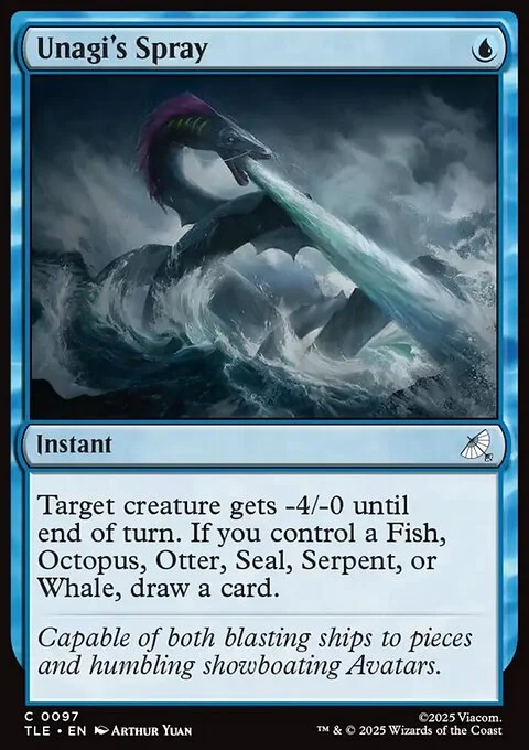 Target creature gets -4/-0 until end of turn. If you control a Fish, Octopus, Otter, Seal, Serpent, or Whale, draw a card.