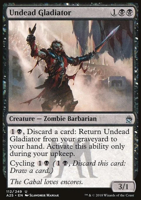 {1}{B}, Discard a card: Return Undead Gladiator from your graveyard to your hand. Activate only during your upkeep. Cycling {1}{B} ({1}{B}, Discard this card: Draw a card.)
