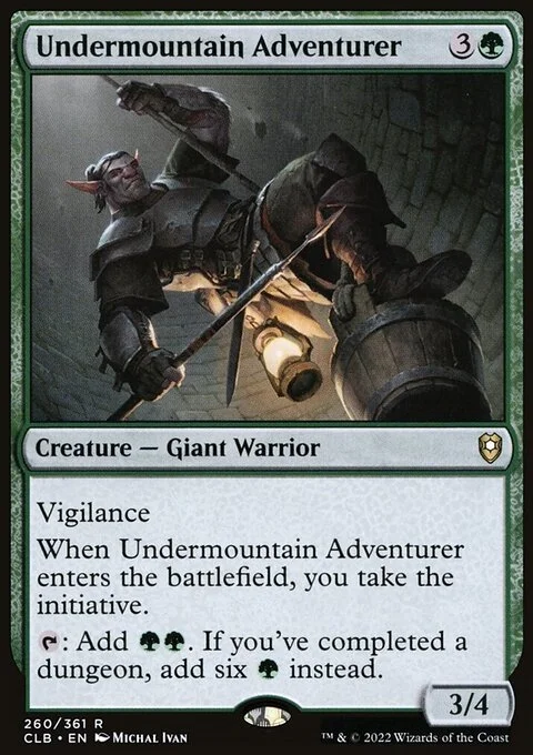 Vigilance When Undermountain Adventurer enters, you take the initiative. {T}: Add {G}{G}. If you've completed a dungeon, add six {G} instead.