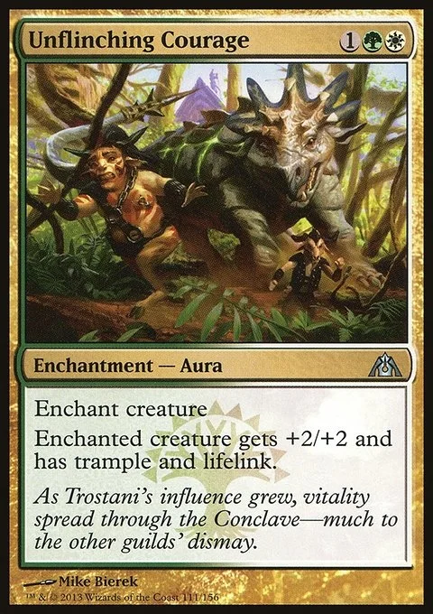 Enchant creature Enchanted creature gets +2/+2 and has trample and lifelink. (Damage dealt by a creature with lifelink also causes its controller to gain that much life.)