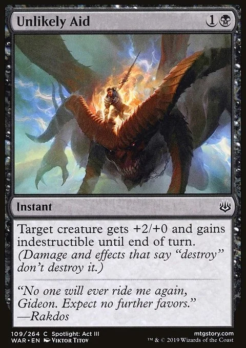 Target creature gets +2/+0 and gains indestructible until end of turn. (Damage and effects that say "destroy" don't destroy it.)