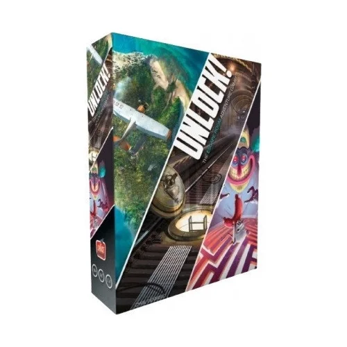 UNLOCK! is a series of escape adventures for up to six players. With one hour on the clock, players must work through a deck of sixty cards as a team, searching for clues, combining objects, and solving puzzles. The free UNLOCK! companion app runs the timer while providing clues, offering hints, and confirming successes. Once the team has reached a solution and entered the correct code into the app, they win the game!