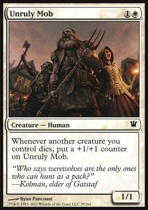 Whenever another creature you control dies, put a +1/+1 counter on Unruly Mob.