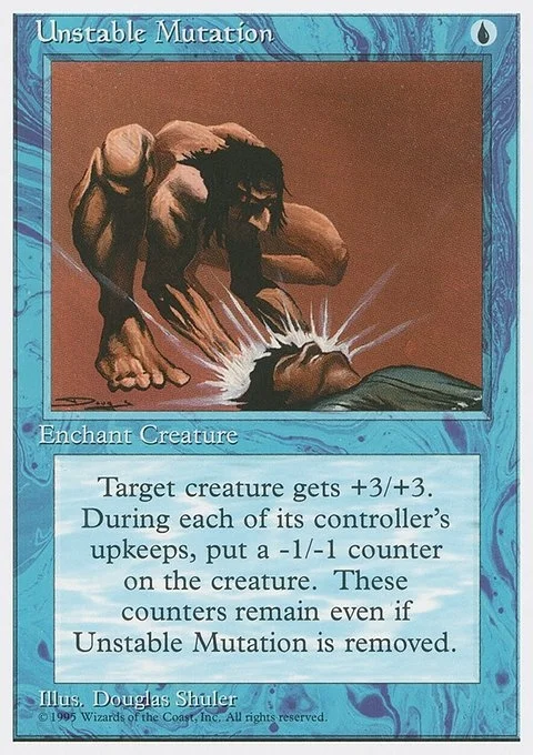 Enchant creature Enchanted creature gets +3/+3. At the beginning of the upkeep of enchanted creature's controller, put a -1/-1 counter on that creature.