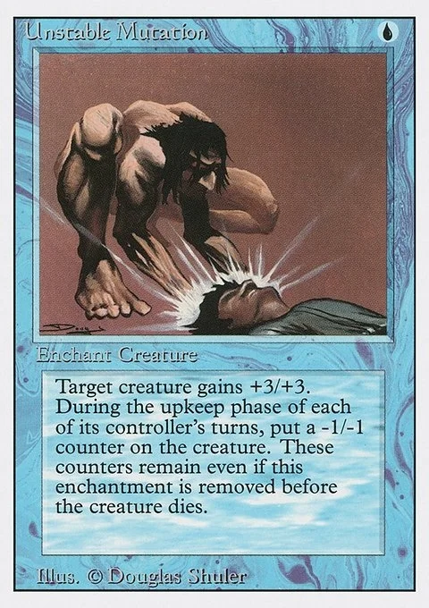 Enchant creature Enchanted creature gets +3/+3. At the beginning of the upkeep of enchanted creature's controller, put a -1/-1 counter on that creature.