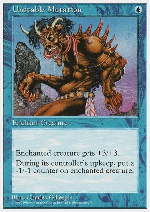 Enchant creature Enchanted creature gets +3/+3. At the beginning of the upkeep of enchanted creature's controller, put a -1/-1 counter on that creature.