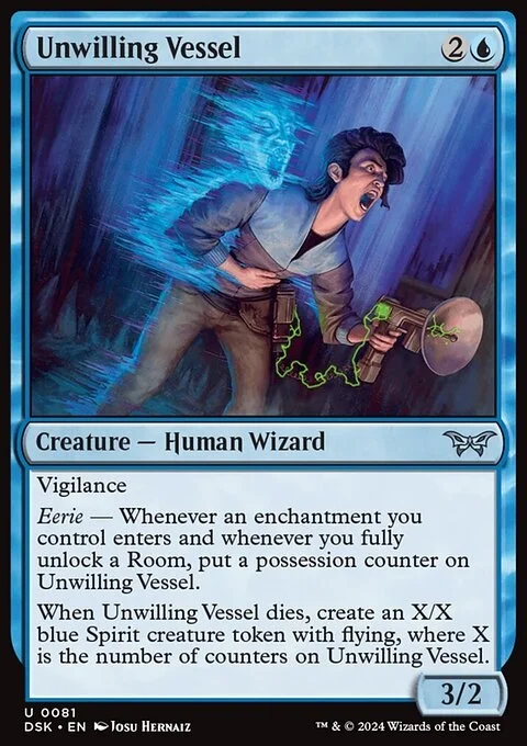 Eerie — Whenever an enchantment you control enters and whenever you fully unlock a Room, put a possession counter on this creature.