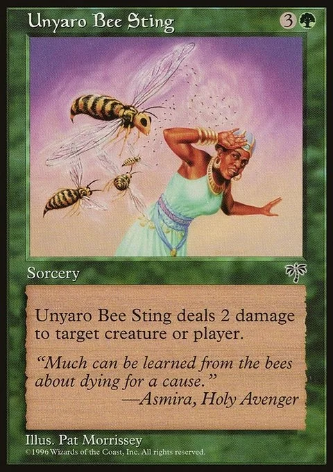 Unyaro Bee Sting deals 2 damage to target creature or player.