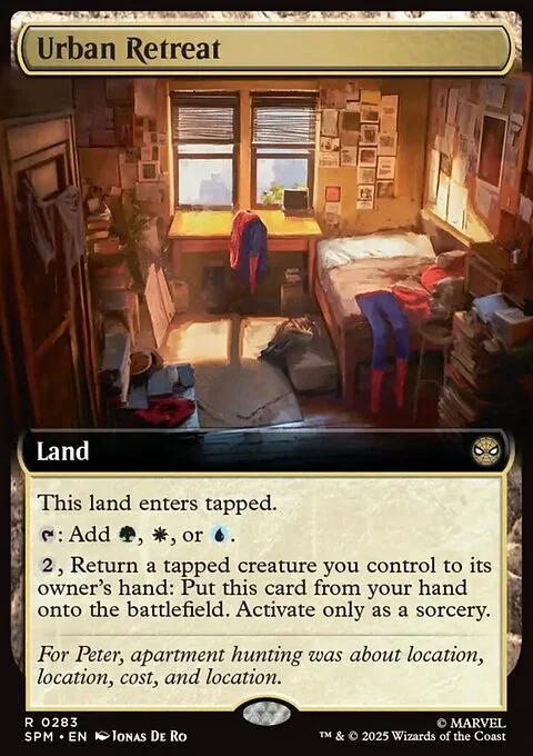 This land enters tapped. {T}: Add {G}, {W}, or {U}. {2}, Return a tapped creature you control to its owner's hand: Put this card from your hand onto the battlefield. Activate only as a sorcery.