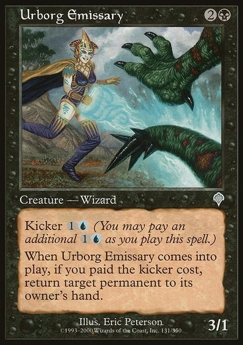 Kicker {1}{U} (You may pay an additional {1}{U} as you cast this spell.) When Urborg Emissary enters the battlefield, if it was kicked, return target permanent to its owner's hand.