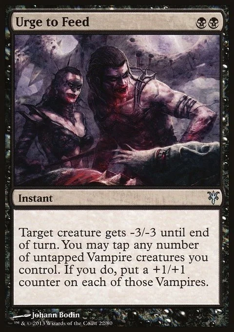 Target creature gets -3/-3 until end of turn. You may tap any number of untapped Vampire creatures you control. If you do, put a +1/+1 counter on each of those Vampires.