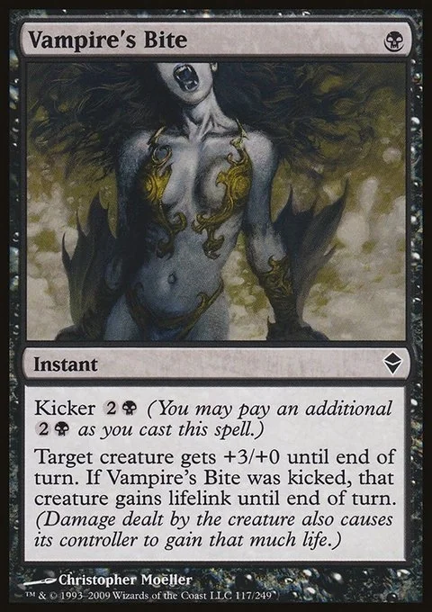 Kicker {2}{B} (You may pay an additional {2}{B} as you cast this spell.) Target creature gets +3/+0 until end of turn. If this spell was kicked, that creature gains lifelink until end of turn. (Damage dealt by the creature also causes its controller to gain that much life.)
