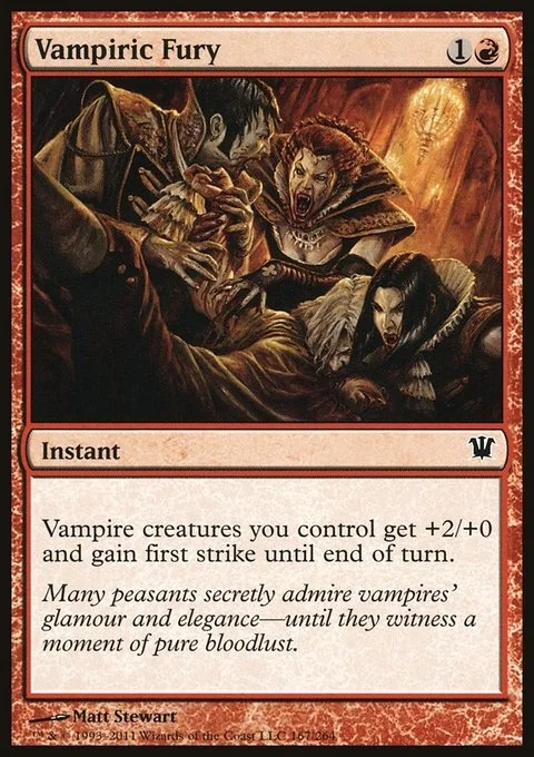 Vampire creatures you control get +2/+0 and gain first strike until end of turn.